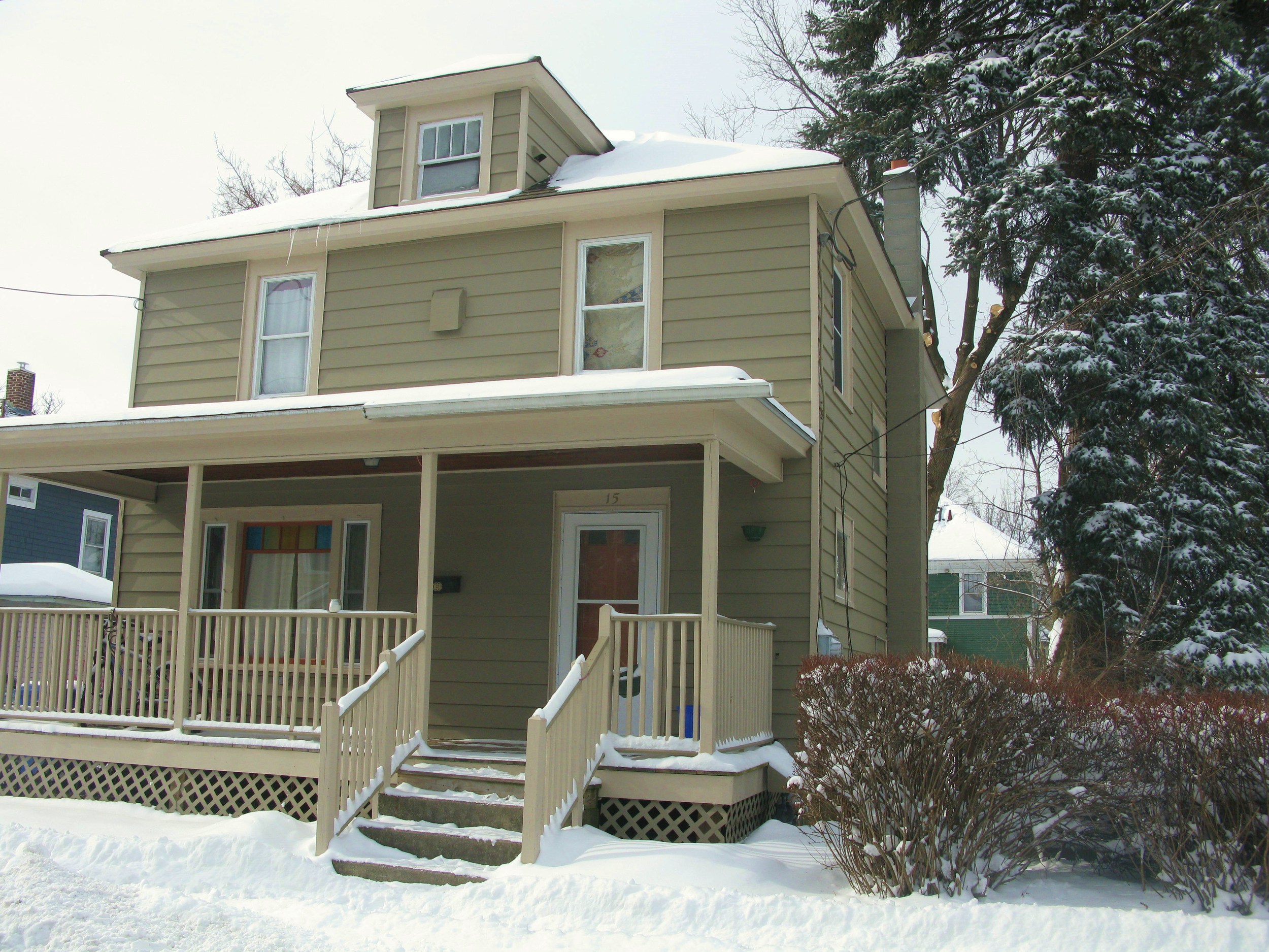 This is a 5 bdrm house w/ hardwood flooring throughout. 2 updated bathrooms, eat in updated kitchen, 5 bdrms, spacious living room, basement for storage and 1 stall garage. On quiet street (no parties). Washer & dryer on site (not coin-op). Porch. Rent includes parking in driveway and/or garage w/ residential only on Booth Street and lawn maintenance. Tenants pay gas heat, gas hot water, water, electric, garbage & snow removal.