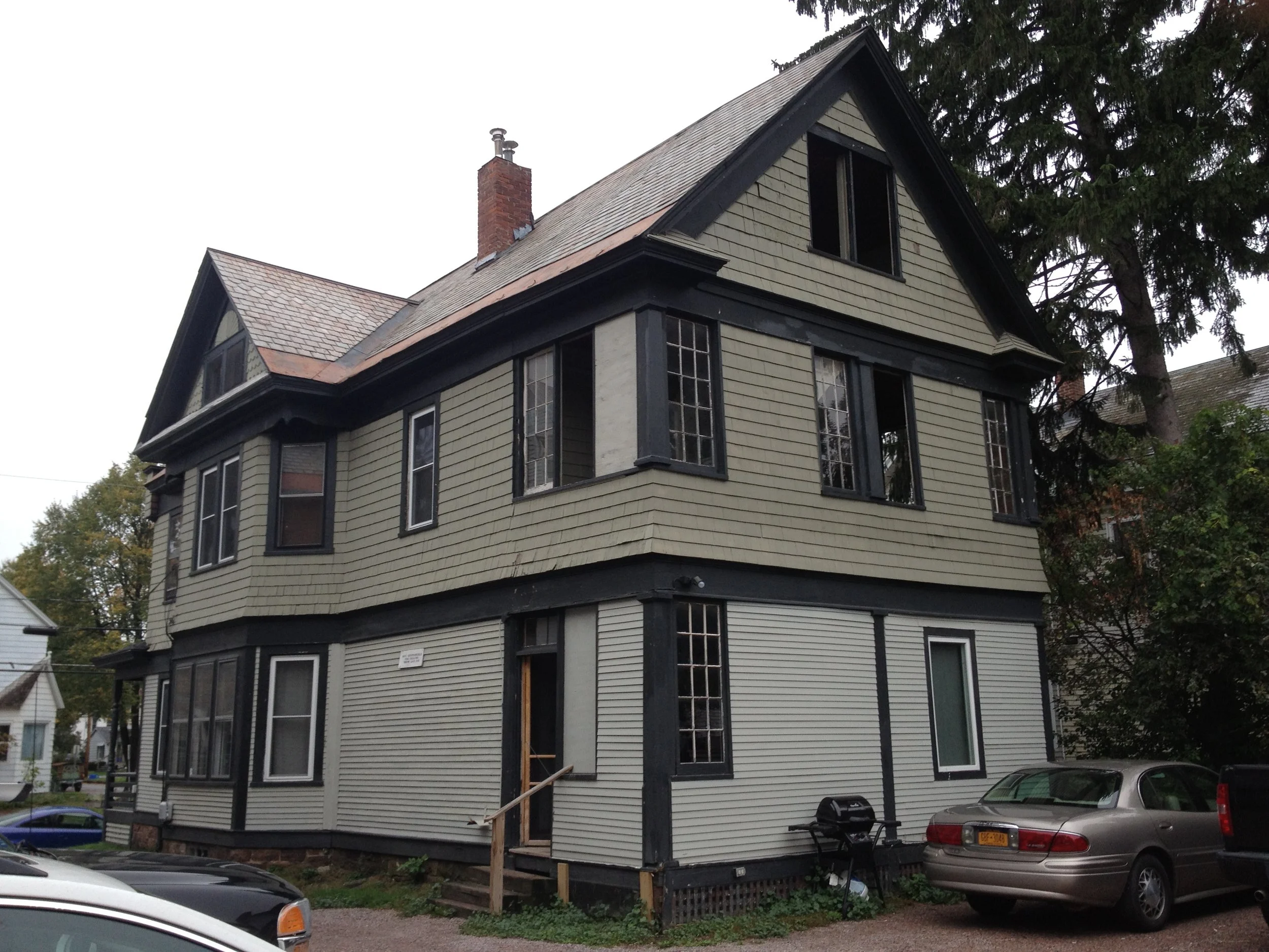 This is a split level 2nd/3rd flr 2 bdrm unit with living room, updated kitchen and full bath on 2nd floor 2 bdrms on 3rd floor. All new windows. Rent includes 1 off st parking space, water, garbage & snow removal. On-site coin-op laundry. Tenant pays gas heat (space heater style system), gas hot water & electric. Living room 10.6' x 11.6', kitchen 6' x 6', front bedroom roughly 12' x 18', rear bedroom, 10.5 x 11 and 4 x 11 - jog out for chimney between two measurements