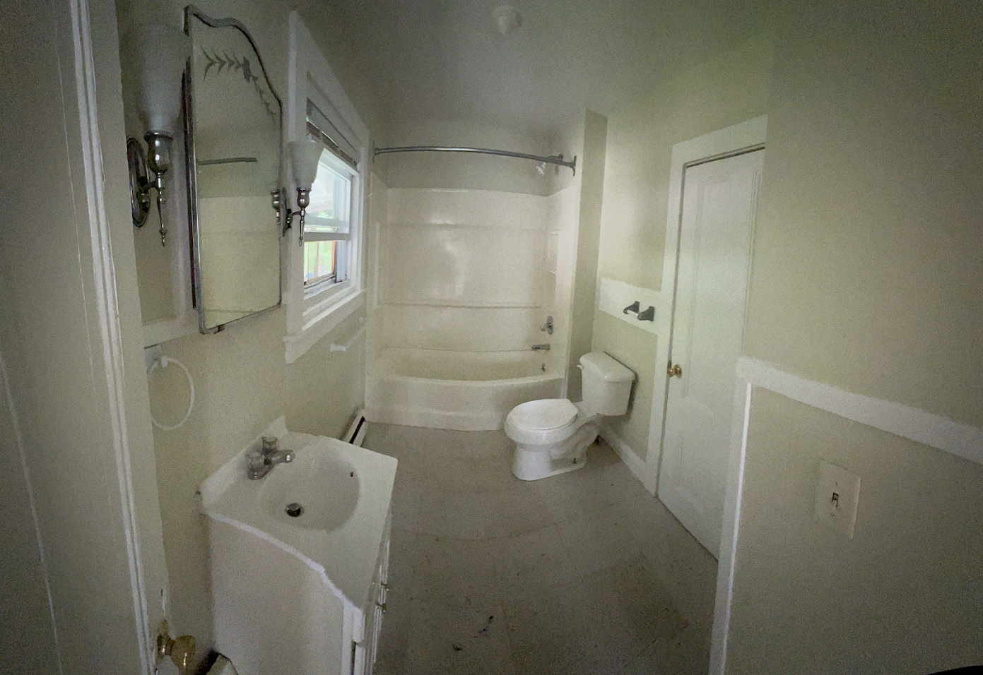 This is a 2nd floor unit with living room/kitchen combo (open), recently updated full bath and 2 bedrooms. All new windows. Separate entrance and small private porch. Rent includes 1 off street parking spaces, water, garbage & snow removal. On-site coin-op laundry. Tenant pays gas heat (space heater style), gas hot water & electric. Bedroom: 9 x 12.6, Bedroom 9.6 x 11.6, Living room 12 x 12