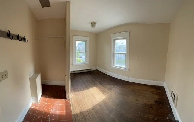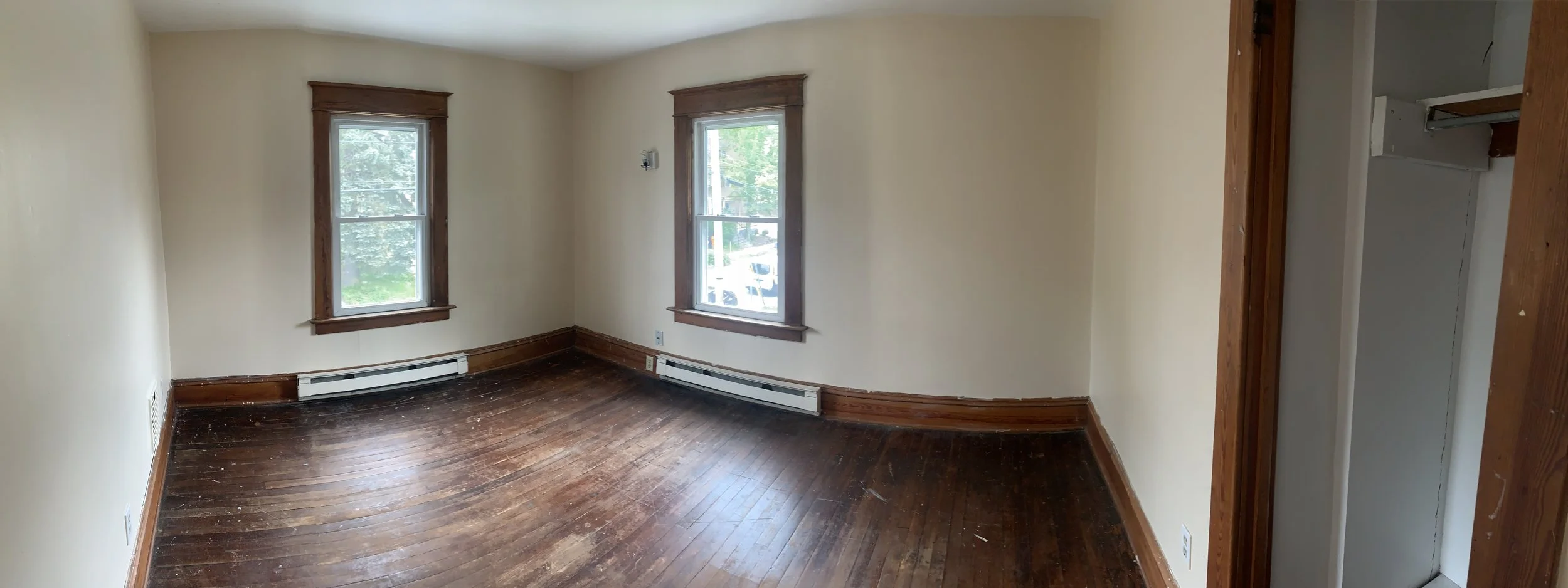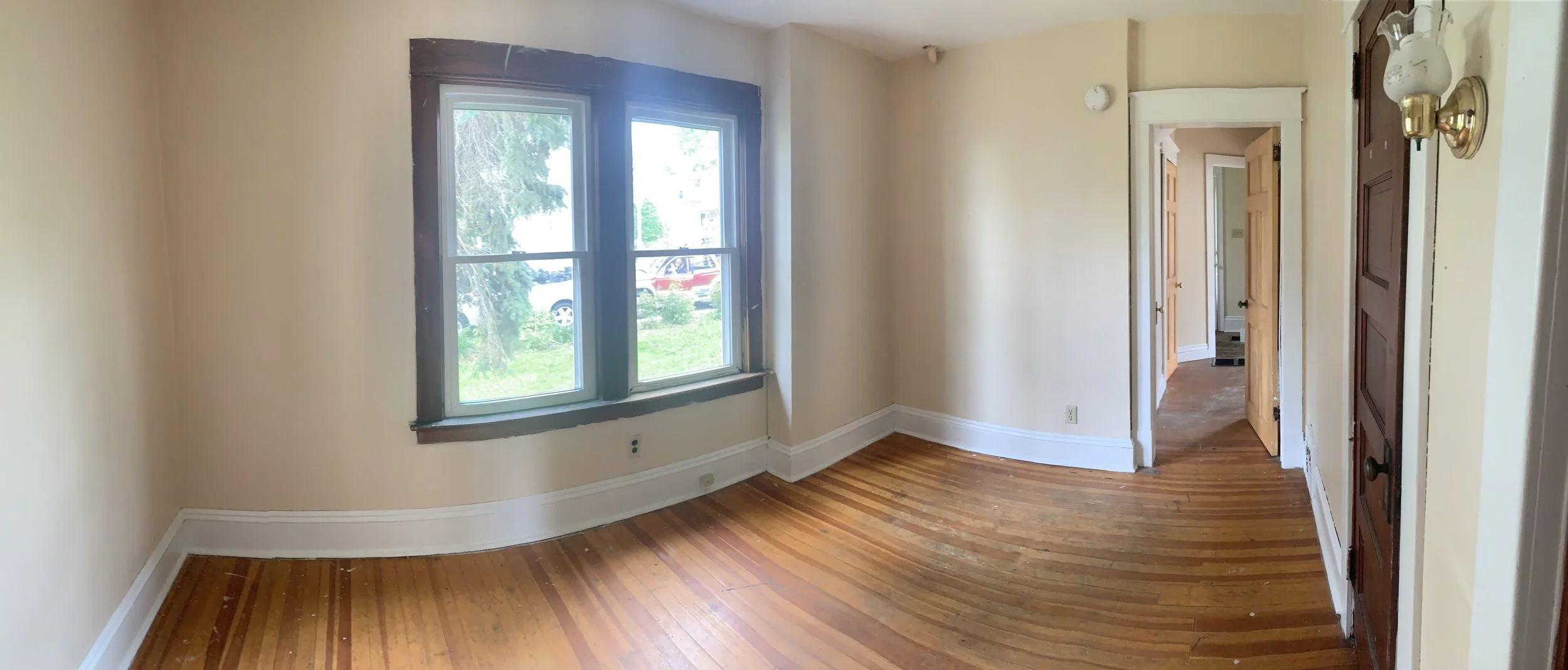 This is a 4 bedroom house w/ hardwood flooring throughout. 4 bedrooms, spacious living room, dining room, eat in kitchen, 2 bathrooms. Use of basement (storage purposes only).Washer & dryer on site (not coin-op). Rear deck w/ roof and ample parking. Rent includes parking in driveway and lawn maintenance. Tenants pay gas heat, gas hot water, water, electric, garbage & snow removal. living room 15' x 12', dining rm 12' x 11', 2nd floor bedroom 12' x 12' , 2nd floor bedroom 8.6' X 9', 1st floor bedroom 12.6' x 8.6' basement bedroom 11' x 12'